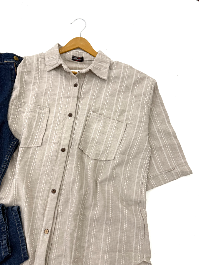- بافت کوک دورزی، امضای خاص شما: بافت ظریف و راهراه برجسته (کوک دورزی) روی پارچه، ظاهری کژوال و در عین حال شیک به این شومیز میبخشد که آن را از سایر بلوزها متمایز میکند.