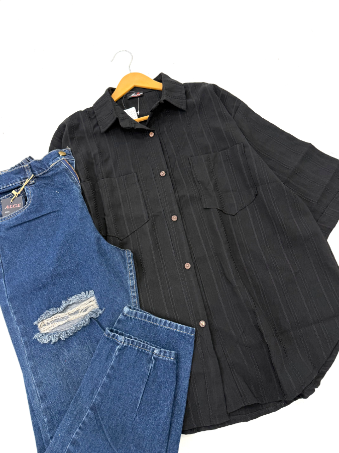 - جیبهای کاربردی و دکمههای شیک: دو جیب پاکتی در جلو و دکمههای همرنگ و با کیفیت، جزئیاتی هستند که به زیبایی و کارایی این شومیز افزودهاند.